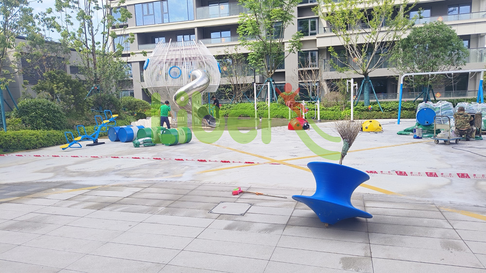 小區(qū)的高端品質(zhì)也體現(xiàn)在對(duì)細(xì)節(jié)的追求上。游樂區(qū)域的地面采用柔軟的材料鋪設(shè),既舒適又安全,即使孩子們不小心摔倒也不會(huì)受傷。周邊還設(shè)置了休息區(qū),方便家長(zhǎng)們?cè)谝慌耘惆楹驼湛春⒆?,同時(shí)也能享受片刻的寧?kù)o與放松。