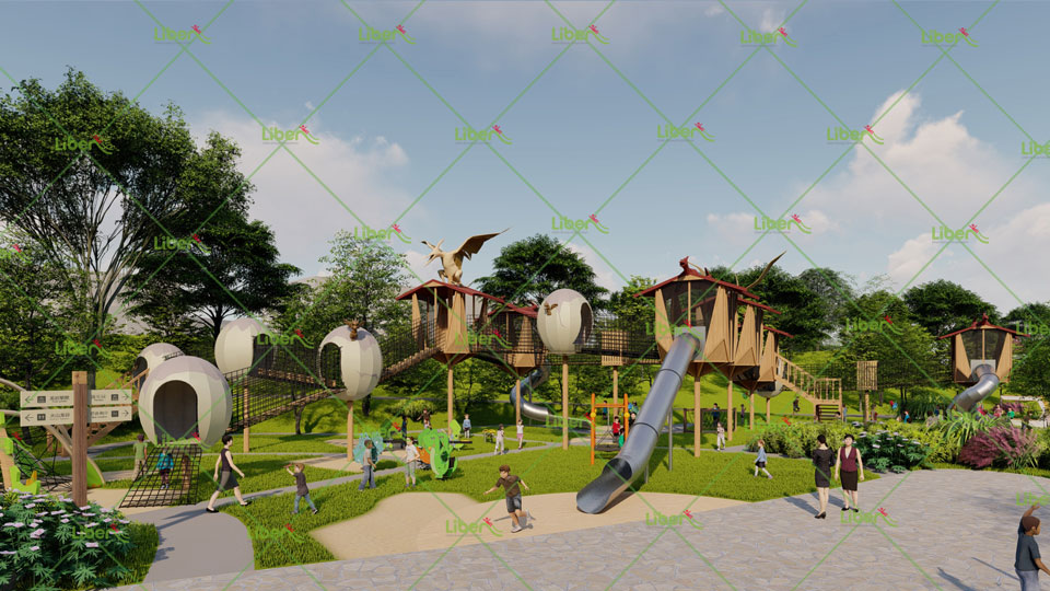其中戶外無動力親子游樂區(qū)域是立本重點打造區(qū)域,以恐龍為主題,由快樂島、翼龍穿梭、延吉龍、火山巖四大區(qū)域組成。