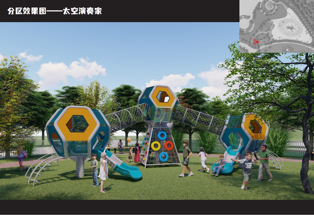 主要以組合滑梯、哈德拉、動(dòng)物搖搖樂、微地形鉆洞為主。無頂篷主要是由兩大滑梯組合而成,