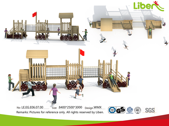 木質(zhì)類材質(zhì)最大的優(yōu)點(diǎn)在于天然無(wú)毒害,原料的價(jià)格比較實(shí)惠,能夠根據(jù)兒童游樂(lè)設(shè)備的要求設(shè)計(jì)不同的類型。但是有一 個(gè)缺點(diǎn)就是因?yàn)槟举|(zhì)材質(zhì)的使用年限要遠(yuǎn)低于金屬類的材質(zhì)。
