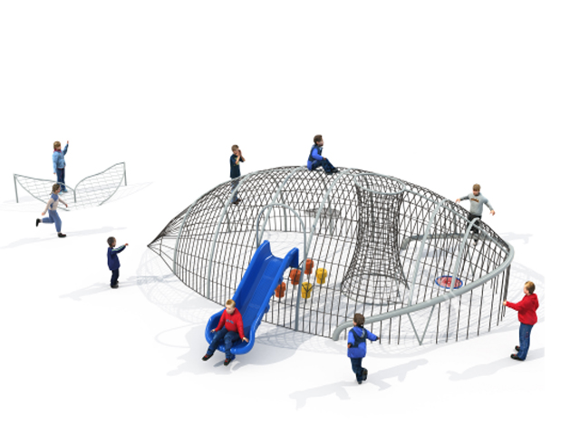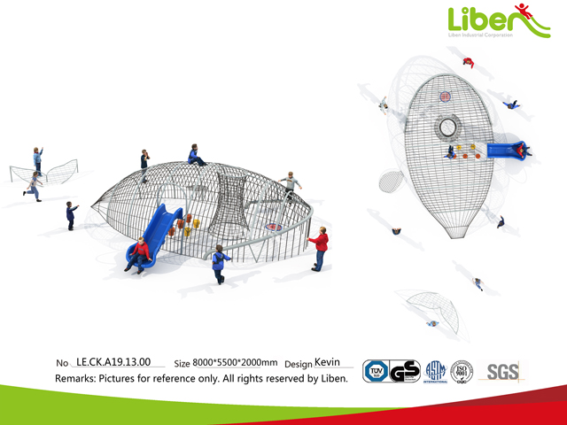 彩虹攀爬設(shè)備在整體的造型上更像是一個蜘蛛網(wǎng),網(wǎng)面的設(shè)計有彩虹樹屋、溶洞、飛碟等不同的形式設(shè)計感。美輪美奐,變化多彩,總是可以給孩子們帶來更多的驚喜。立本集團