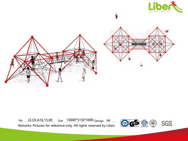 采用不同的設(shè)計(jì),兒童繩網(wǎng)探險(xiǎn)設(shè)施可謂充滿對(duì)孩子的吸引力,通過參與探險(xiǎn),這不僅利于發(fā)揮孩子的行動(dòng)力,還可以激發(fā)他們的想象力。再者,由于設(shè)計(jì)的精巧,孩子們?cè)谕娴酶吲d的同時(shí),也讓身體得到了充分鍛煉。這類游戲最大的優(yōu)勢(shì),就是非常有利于幫助兒童塑造不甘落后,勇于爭取的精神,特別是突出他們敢于放開手腳去探險(xiǎn)的心理素質(zhì)!