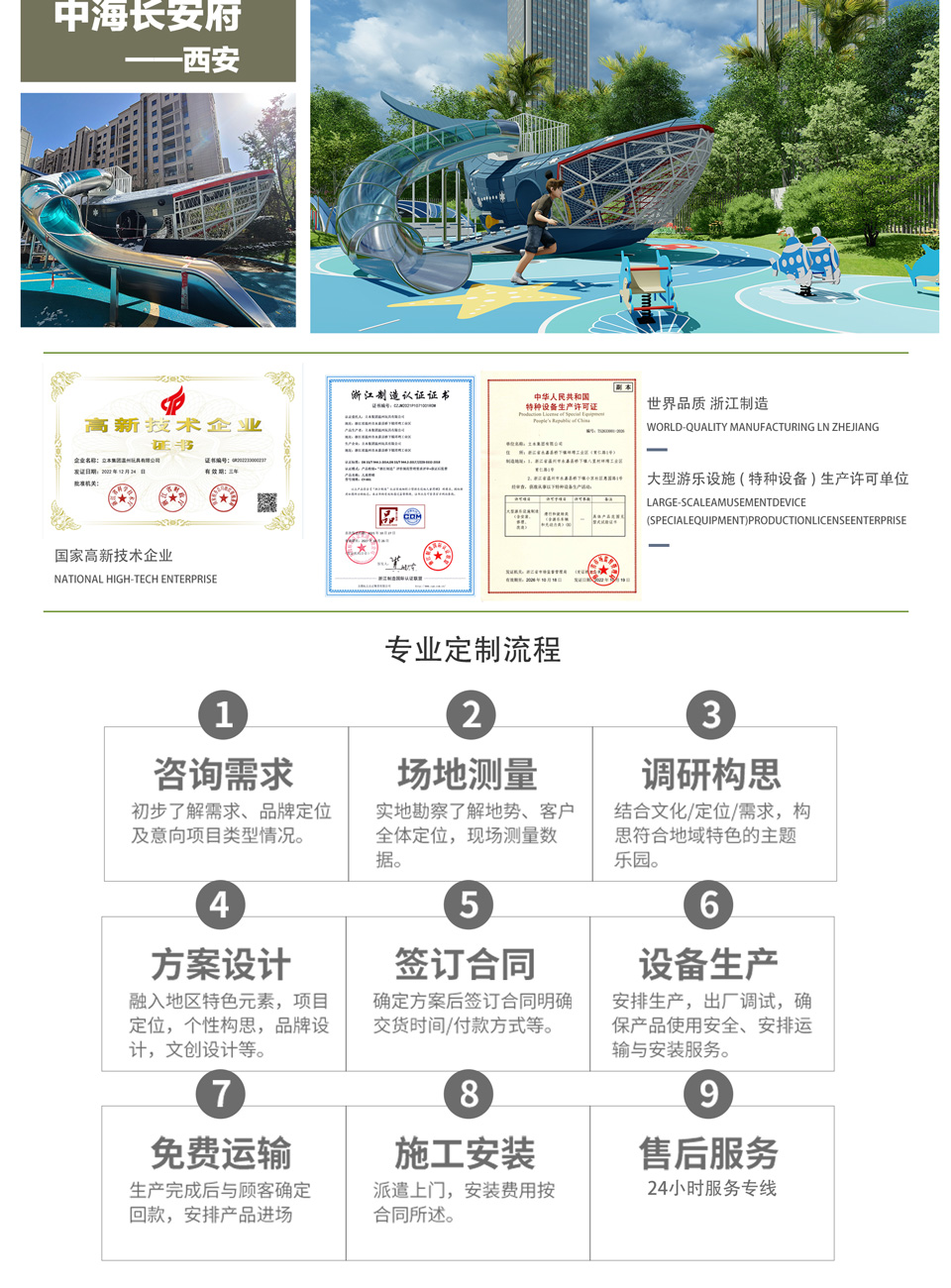 1.選擇具有各種資格認證的制造商來購買兒童組合滑梯。